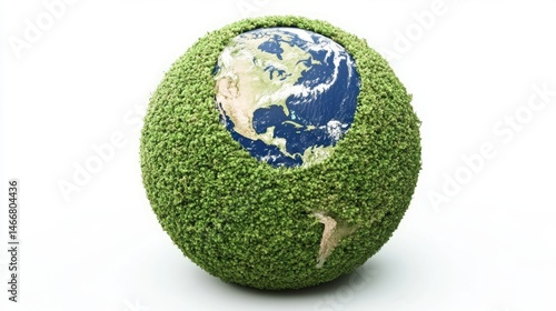 Earth covered in green moss concept close up studio shot on white background showing North and South America