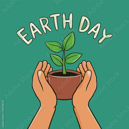 earth day flat art cartoon vector illustration both hands holding a plant. world earth day illustration concept