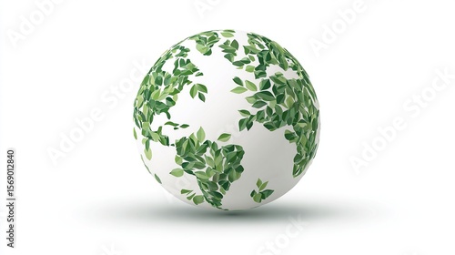 Earth shaped globe covered in green leaf continents on a white background