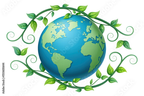 Earth surrounded by green vines and leaves design, cut out - stock png.