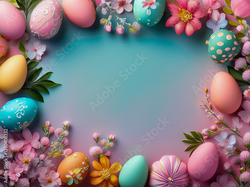 easter eggs spring flowers light pastel textured background
