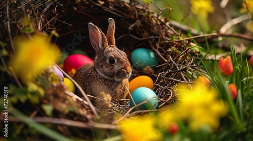 Easter scene in spring, family, easter with easter bunny