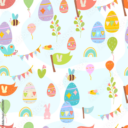 Easter Seamless Pattern with Bunny and Eggs . Perfect for Easter cards, invitations, and decorations.
