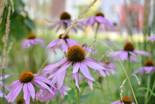 Echinacea purple on a flower bed with a blurred background. Botanical Garden
