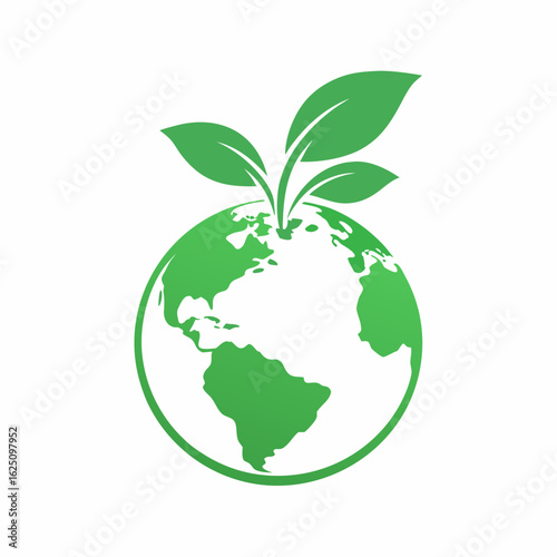 Eco Friendly Earth Globe Icon Design Green Planet Nature Leaf Vector Art.