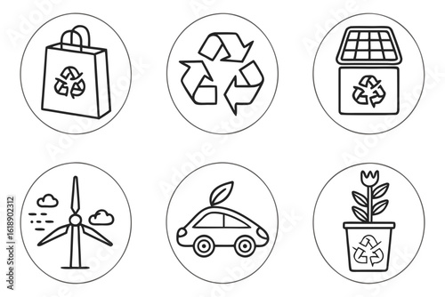 Eco Lifestyle & Sustainability Icons – Minimalist Black Line Art Vector Set