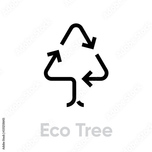 Eco tree recycle icon. Editable line vector.