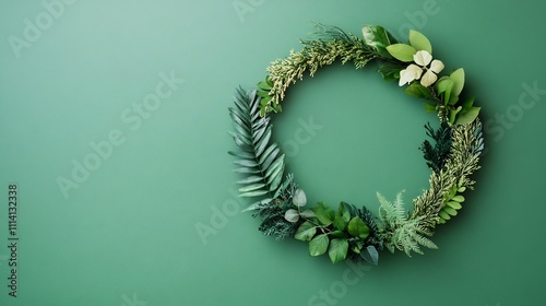 Eco-Friendly Circular Wreath of Lush Green Foliage for Sustainable Branding and Packaging Design