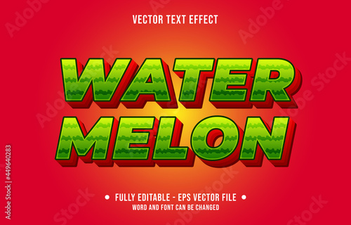 Editable text effect gradient green and red fresh watermelon fruit style