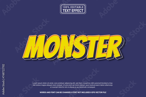 Editable text effect Monster 3d cartoon template style modern premium vector