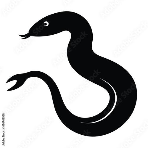 Eel Silhouette Slithering Through Water Elongated Vector on White Background