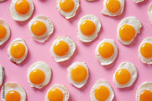 Eggs arrangement on a pastel pink background, top view, flat lay, minimalistic concept of organic food