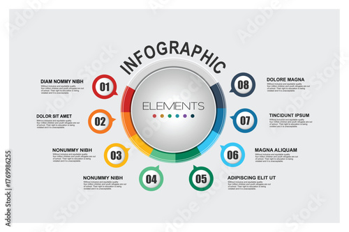 Eight Segmented Ring Diagram with Central Elements and Labels.