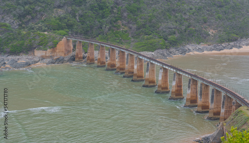 Eisenbahnbrücke über den Krokodil Fluss - Kaaimans River an der Küste vom Indischer Ozean Südafrika