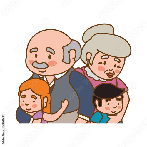 elder couple children grandsons family icon vector illustration