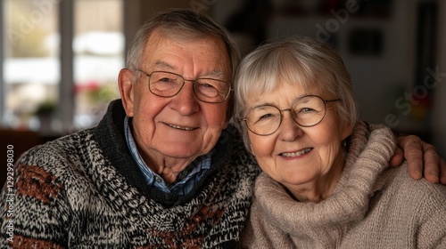 Elderly couple sharing warm smiles, embodying enduring love and connection.