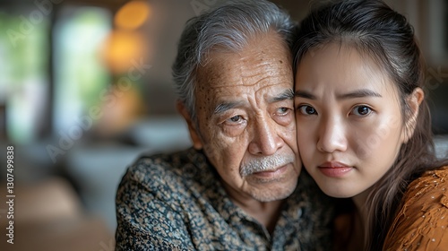 Elderly Couple's Sad Embrace