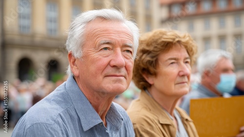 Elderly Protesters Observing Peaceful Demonstration and Holding Signs of Solidarity in an Urban Setting