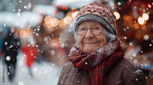 Elderly Woman in Traditional Nordic Winter Attire at Helsinki Christmas Market