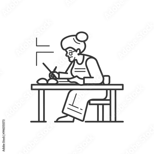 Elderly Woman Sitting at a Desk Writing