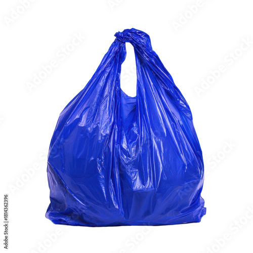 electric blue plastic bag, white background, product shooting.