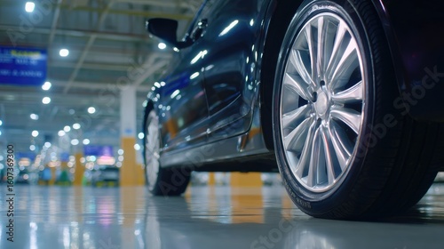 Electric car charging in an underground parking garage featuring professional color grading and clean sharp focus