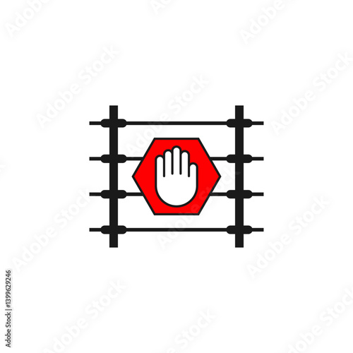Electric fence icon with hand in warning gesture. Isolated vector illustration.