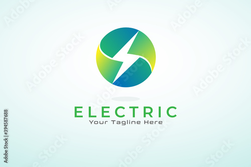 Electric logo, Green thunder bolt icon from circle negative space, Flat Design Logo Template, vector illustration