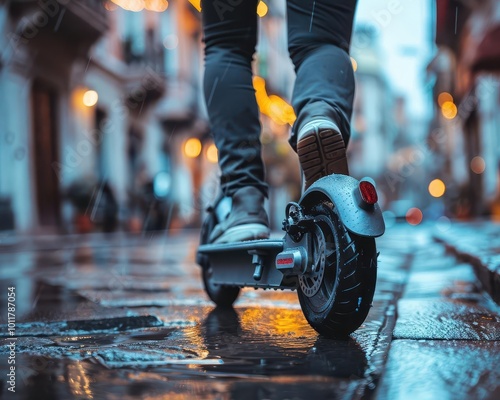 Electric scooter tours with dynamic scenes, modern and practical, Urban, Cool tones, Photograph, Urban transport