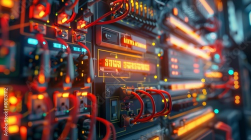 Electrical Circuits. The electric wire behind the control board with lighting effect, Industrial Electrical Concept.
