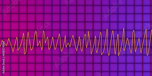 Electrocardiogram ECG displaying Torsades de pointes rhythm, 3D illustration