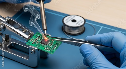 Electronics repair with soldering and smoke