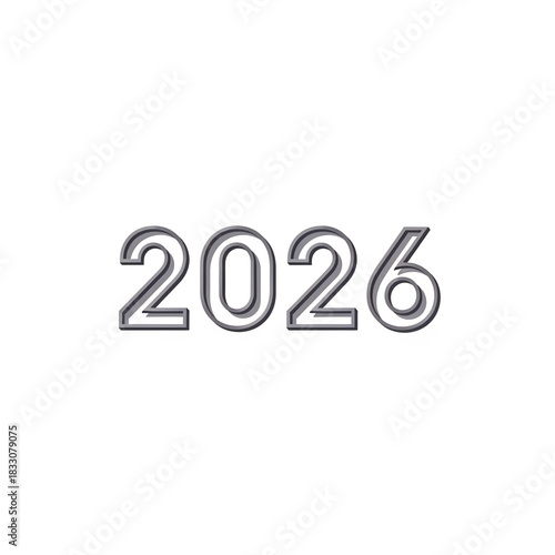 Elegant 2026 number design outlined in silver perfect for new years graphics and modern invitations