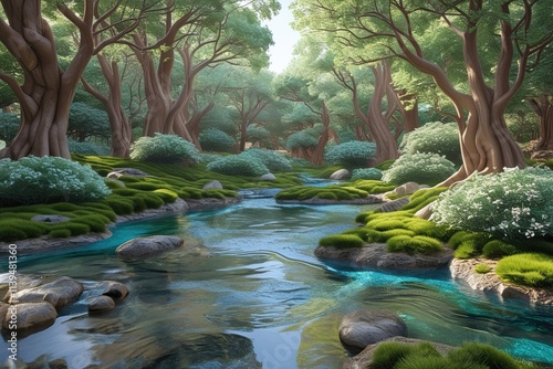 Elegant 3D Forest Landscape with Pristine Streams and Sophisticated Visuals