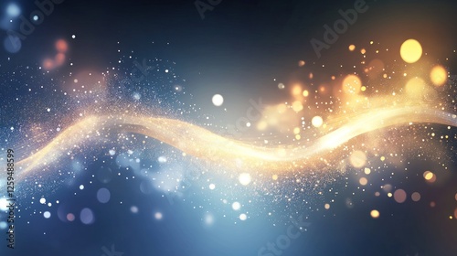 Elegant Abstract Background with Golden Wave and Bokeh Lights Effect