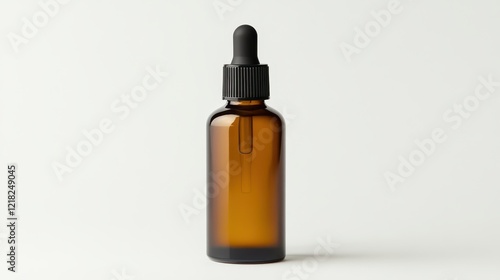 Elegant Amber Glass Dropper Bottle for Essential Oils, Serums, or Medicines, Isolated on a Clean White Background, Ideal for Product Photography and Branding