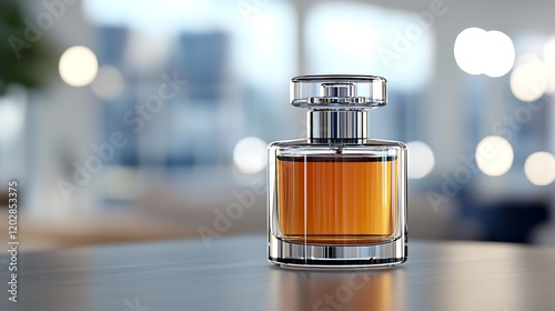 Elegant Amber Perfume Bottle on Modern Table