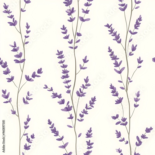 Elegant and Calming Design of Delicate Lavender Sprigs Wallpaper with Soft White Background Perfect for Minimalist and Botanical Decor
