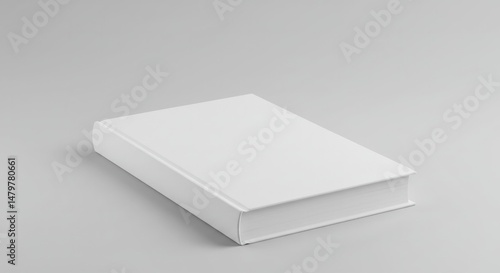 Elegant and minimalist image featuring a blank white book on a subtle gray backdrop