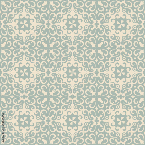Elegant antique background image of spiral round vine kaleidoscope pattern.