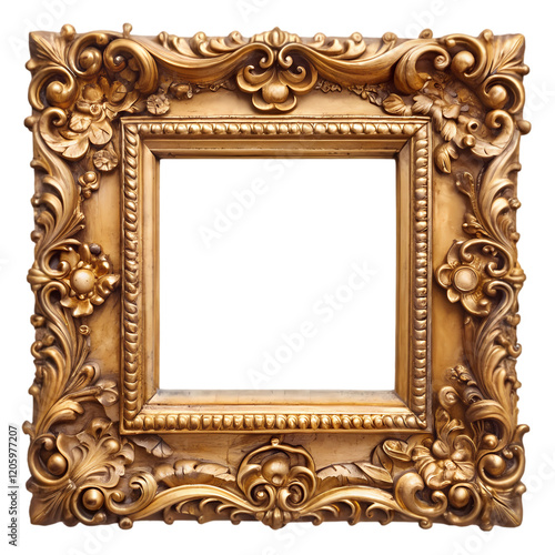 Elegant Antique Gold Picture Frame, Isolated on White Background. Perfect for design projects,