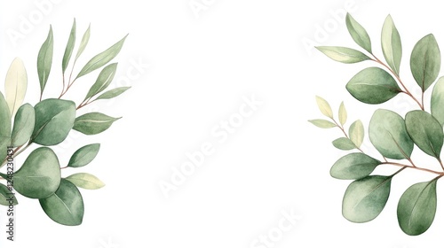 Elegant arrangement of green leaves framing a clean white background for design use