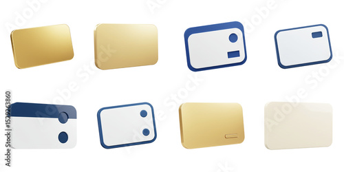 Elegant Array of Cards: A sophisticated assortment of rectangular cards, meticulously arranged with gold and cool-toned design, perfect for financial transactions or conceptual representations.