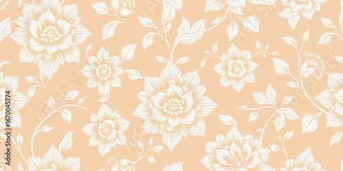Elegant beige & silver floral textile pattern; hand-drawn style, seamless repeat , pattern, background