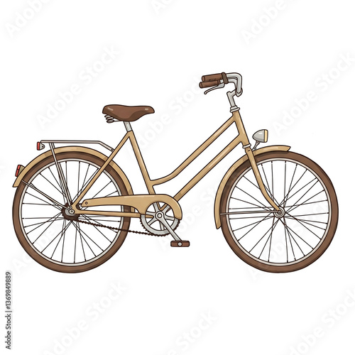 Elegant Bicycle Illustration: A classic, pastel-colored bicycle with a leather seat and stylish design is illustrated against a clear background.