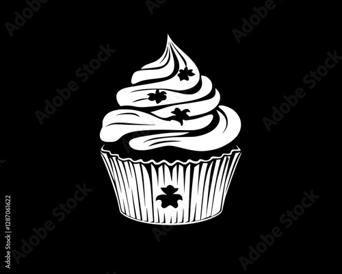 Elegant Black and White Cupcake Illustration