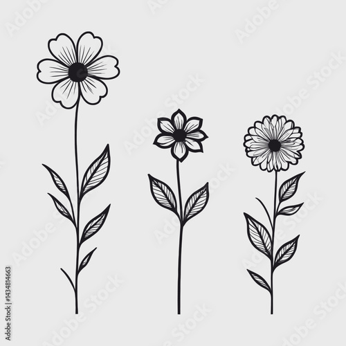 Elegant Black and White Flower Drawings Botanical Illustrations Floral Designs Printable Art