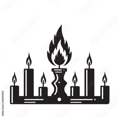 Elegant black and white illustration of a lit candelabra with multiple burning candles