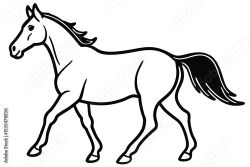 Elegant black and white line art depicting a graceful horse in motion