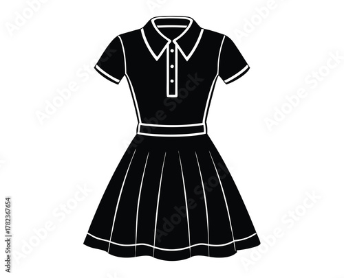 Elegant Black Dress with Pleated Skirt and Collar Design isolated
